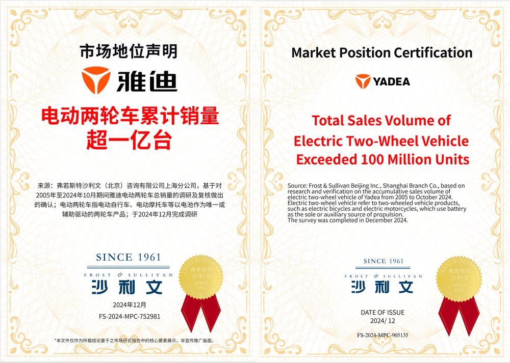 1億台成就解鎖!雅迪霸榜電(diàn)動車(chē)全球第一