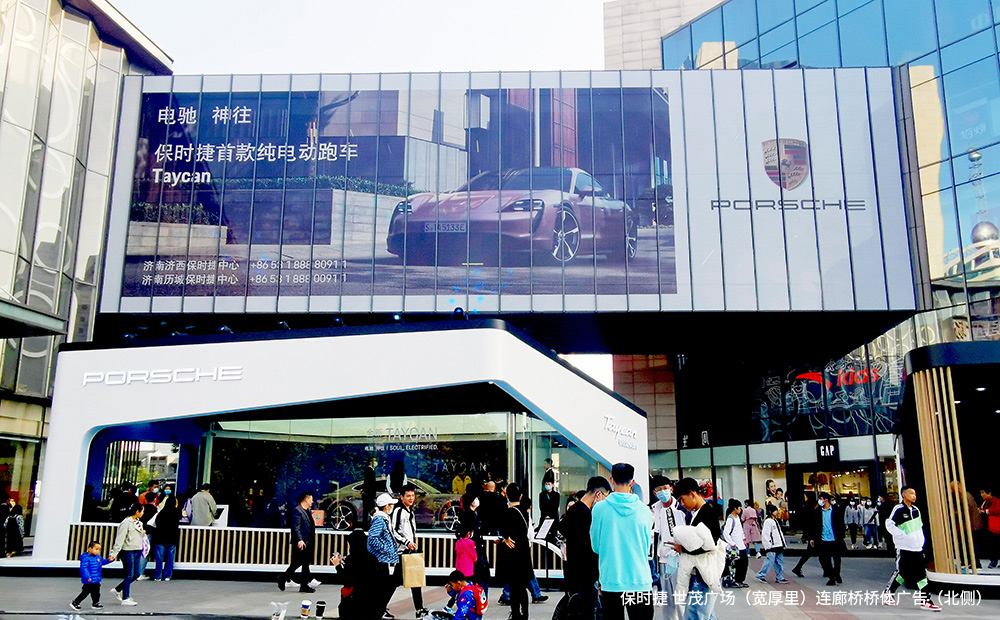 【商(shāng)圈覆蓋優勢】濟南寬厚裏,成都寬窄巷,皆是全國(guó)知名(míng)的網紅打卡地,每年人流量超過750萬,高峰時期達到15萬/天;世茂廣場(寬厚裏)廣場主導了泉城路的旅遊、商(shāng)業龐大流量,既是泉城路的東大門,也是品牌入駐最多(duō)的商(shāng)業區(qū);橋體(tǐ)位于購(gòu)物(wù)廣場和商(shāng)業街(jiē)區(qū)的出入口及活動廣場上方,人氣極佳,玻璃貼形式讓廣告融入商(shāng)業環境,超級巨幅尺寸擁有(yǒu)強大的視覺沖擊力。