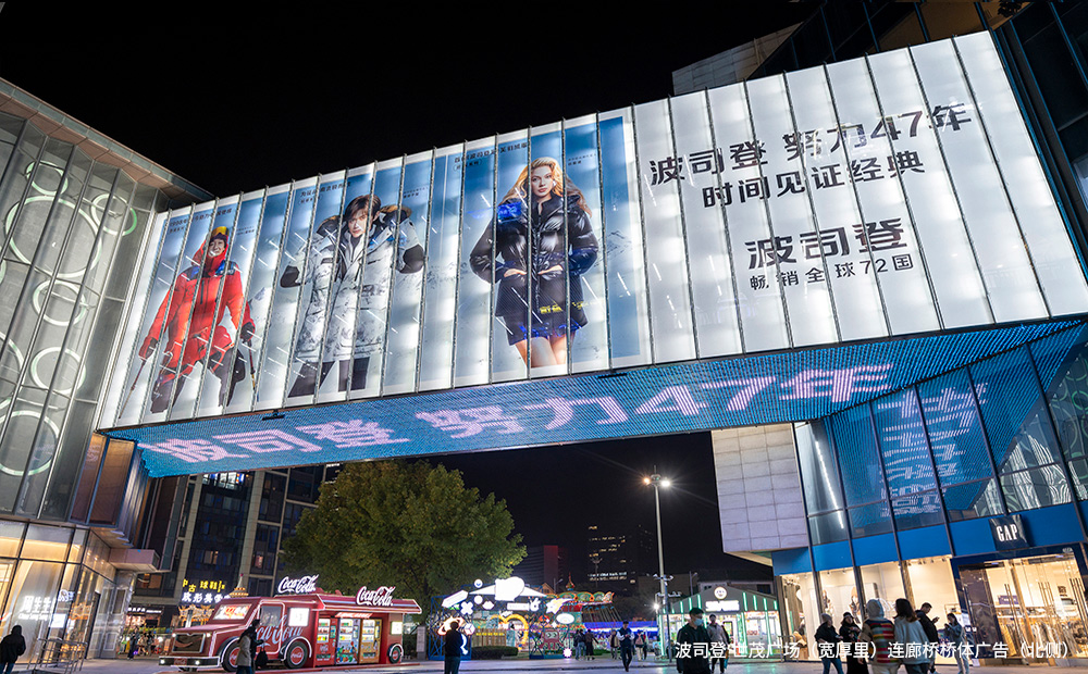 #橋體(tǐ)位于商(shāng)業街(jiē)區(qū)的出入口及活動廣場上方,超級巨幅尺寸擁有(yǒu)強大的視覺沖擊力#