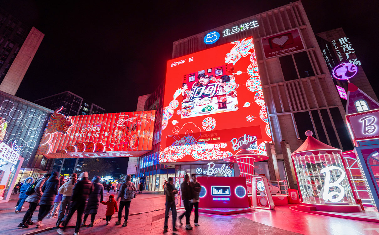 【商(shāng)圈覆蓋優勢】濟南寬厚裏是全國(guó)知名(míng)的網紅打卡地,每年人流量超過750萬,高峰時期達到15萬/天;世茂廣場(寬厚裏)廣場主導了泉城路的旅遊、商(shāng)業龐大流量,也是泉城路商(shāng)業街(jiē)的東大門;橋體(tǐ)位于購(gòu)物(wù)廣場和商(shāng)業街(jiē)區(qū)的出入口及活動廣場上方,面向寬厚裏街(jiē)區(qū),人氣極佳,玻璃貼形式讓廣告融入商(shāng)業環境,超級巨幅尺寸擁有(yǒu)強大的視覺沖擊力。