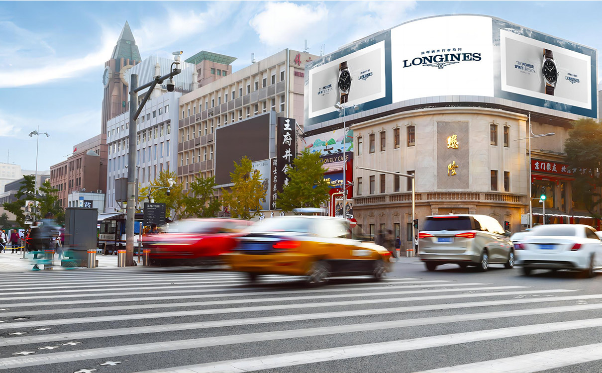 【媒體(tǐ)位置】北京市王府井步行街(jiē)與東安(ān)門大街(jiē)交彙處(懋隆珠寶城樓頂)